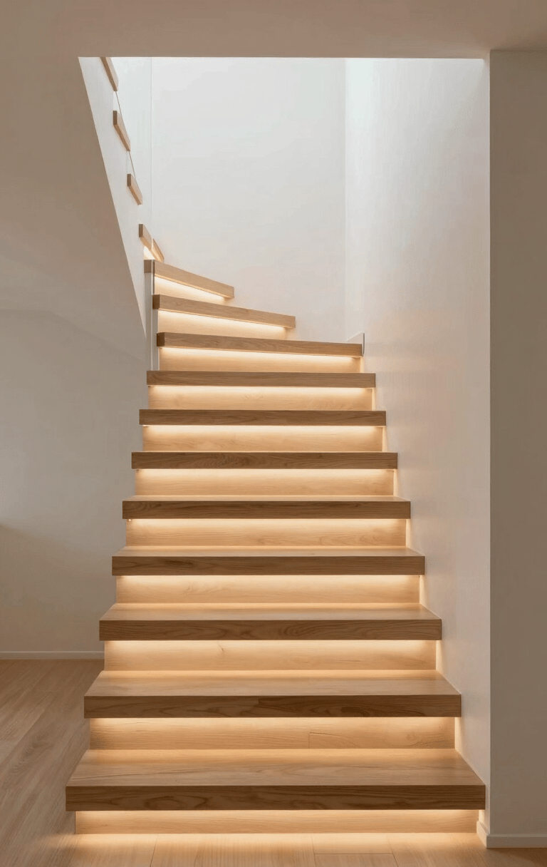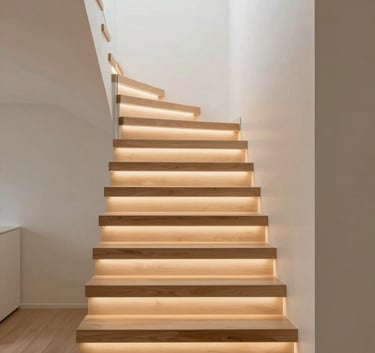Safe, elegant LED stair lighting that automatically illuminates each step—perfect for late nights, families, and peace of mind.